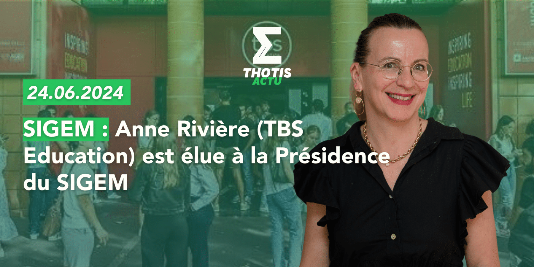 TBS Education annonce l’élection à l’unanimité d’Anne Rivière, actuelle Directrice de la formation initiale au sein de TBS Education, à la Présidence du SIGEM (Système d’Intégration aux Grandes Ecoles de Management). Elle succède à Nicolas Arnaud et prendra ses fonctions le 1er septembre 2024 pour un mandat de trois ans, qu’elle exercera en parallèle de ses responsabilités actuelles à TBS Education.