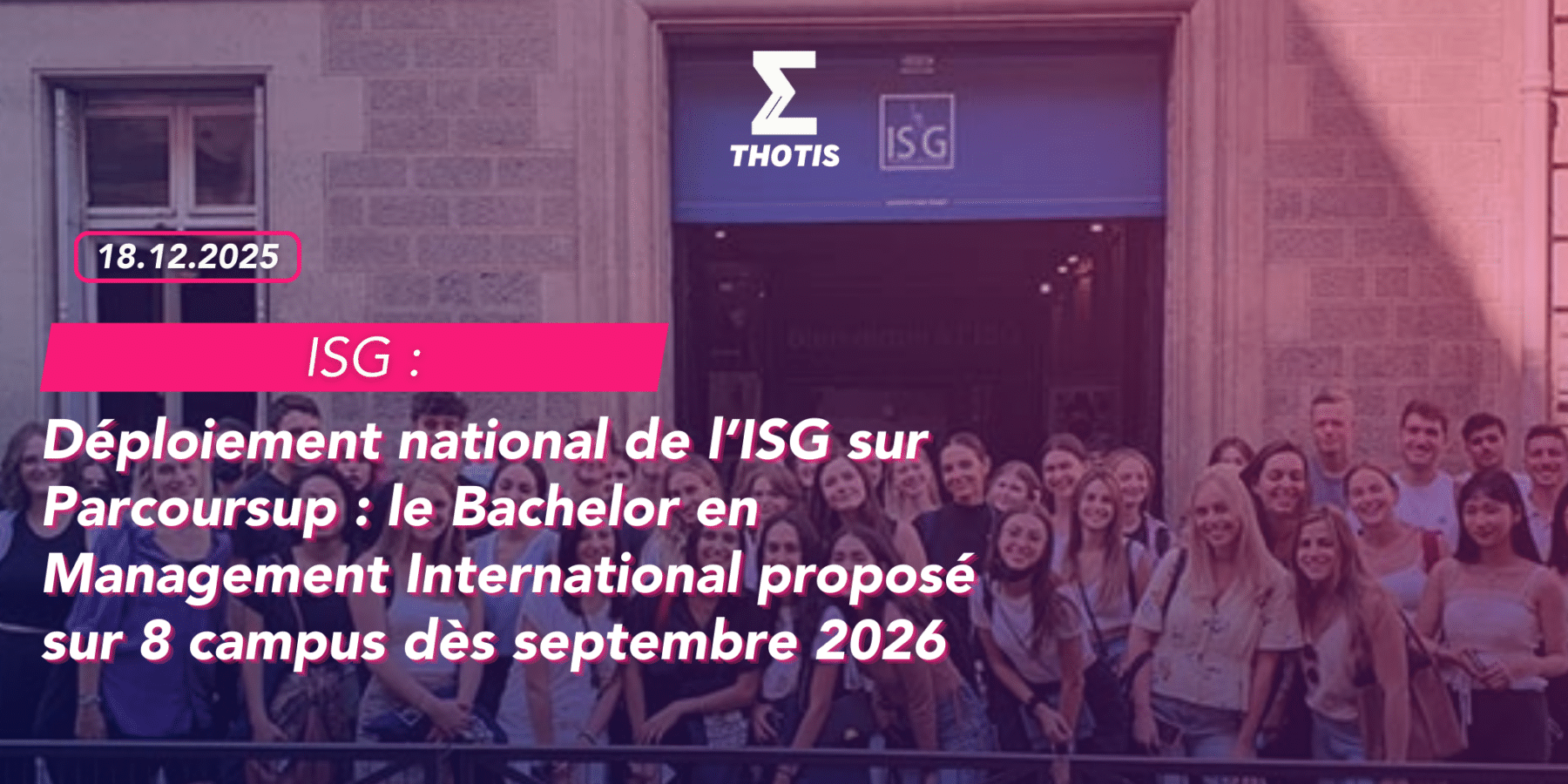Fidèle à sa volonté d’être au plus près des étudiants, l’ISG poursuit le déploiement de ses programmes sur l’ensemble de ses campus. Notre objectif est clair : offrir à chaque étudiant, où qu’il se trouve en France, les mêmes opportunités de formation et d’accompagnement.
