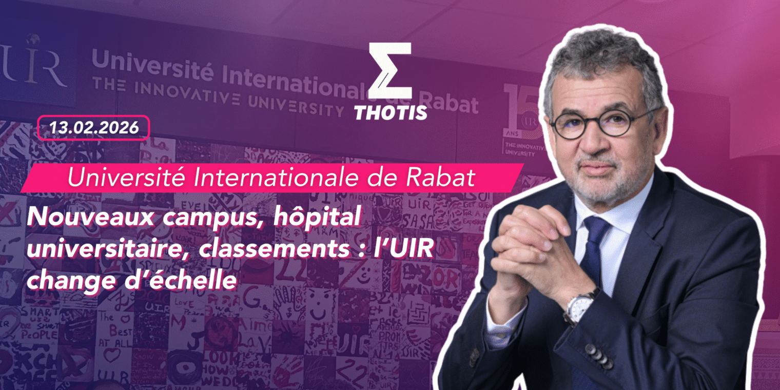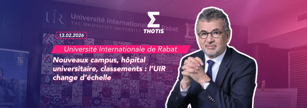 Lors d’un voyage presse organisé par l’Université Internationale de Rabat (UIR), Thotis a découvert le campus et les infrastructures de pointe de cette jeune université marocaine, déjà solidement positionnée dans plusieurs classements internationaux. Le 10 février, l’UIR a présenté une ambitieuse stratégie de développement territorial lors d’une conférence réunissant des médias nationaux et internationaux ainsi que des partenaires académiques français. Au programme : l’ouverture de sept nouveaux campus à travers le Maroc, la construction d’un hôpital universitaire de 530 lits et un renforcement marqué de son attractivité internationale. En quinze ans, l’UIR s’impose ainsi comme un acteur majeur de l’enseignement supérieur au Maroc et en Afrique, avec l’ambition de devenir une université de référence à l’échelle internationale.