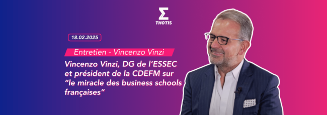 Dans un entretien exclusif accordé à Thotis pour un épisode de “DG sur écoute”, Vincenzo Vinzi, directeur général de l’ESSEC Business School, dévoile ses priorités en tant que nouveau président de la CDEFM (Conférence des Directeurs des Écoles Françaises de Management) et présente les ambitions qu’il nourrit pour l’avenir de l’école. Par Valentine Dunyach  …