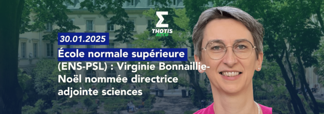Virginie Bonnaillie-Noël, précédemment conseillère recherche au cabinet du ministre de l’Enseignement supérieur et de la recherche, est nommée directrice adjointe sciences de l’ENS-PSL aux côtés de Frédéric Worms, son directeur, à compter du premier février 2025.   OrientationParcoursupNotre Test Parcoursup Ressources complémentaires : Télécharge et reçois 300 exemples de lettres de motivation Parcoursup Tout savoir…