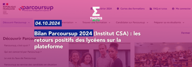 Bilan Parcoursup 2024 (Institut CSA) : les retours positifs des lycéens sur la plateforme