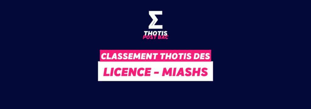 Le classement Thotis des licences MIASHS via Parcoursup en 2025