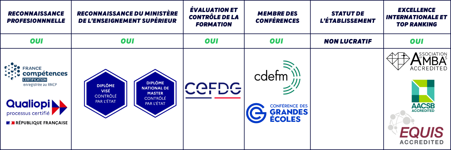 💡 Frais de scolarité : de 9 000 € à 18 000 € par an selon le programme, avec de nombreuses possibilités de bourses, prêts étudiants et apprentissage.