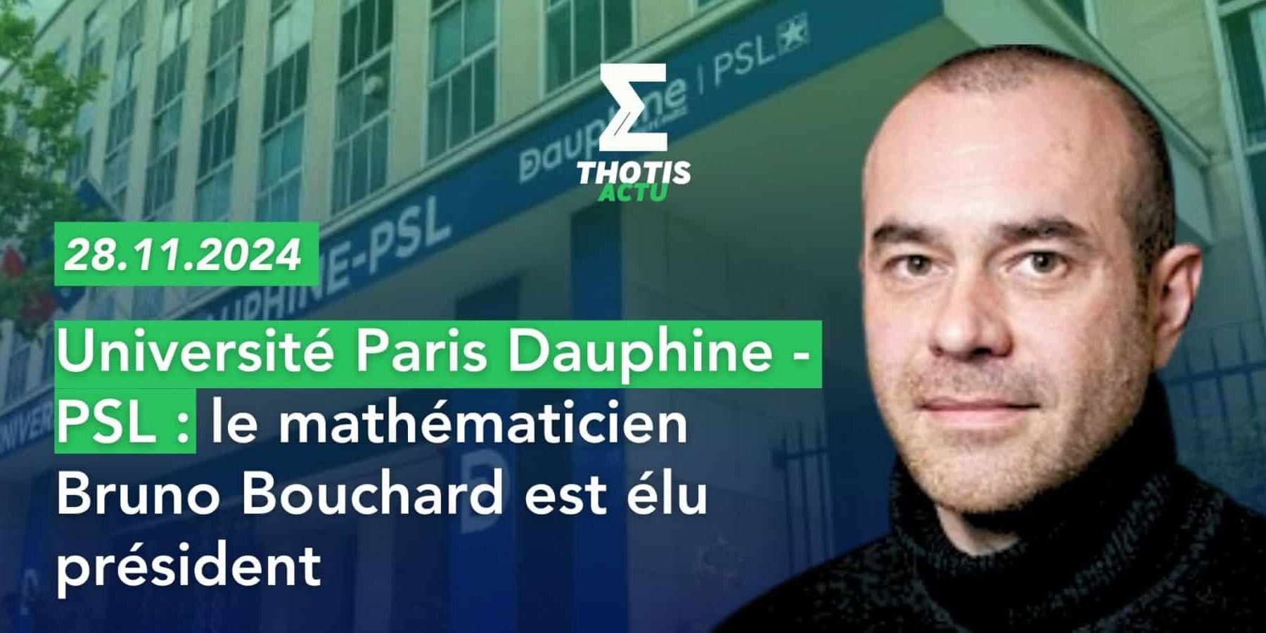 Jeudi 28 novembre 2024, les membres des conseils de l’Université Paris Dauphine-PSL ont élu le professeur Bruno Bouchard à la Présidence. Vice-président du Conseil scientifique depuis 2016, il a été au cœur des évolutions de Dauphine et de la structuration de PSL. Il a accompagné ou porté directement de nombreux projets stratégiques.