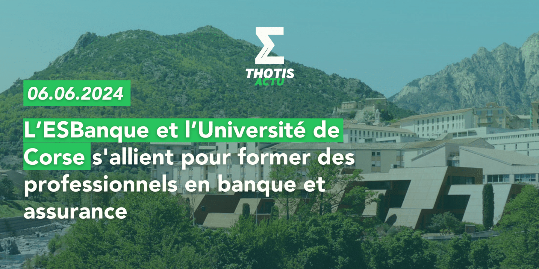 Le 5 juin, L’École supérieure de la banque (ESBanque) et l’université de Corse ont signé un partenariat. Ce partenariat stratégique vise à renforcer le développement économique, social et culturel en offrant des formations de pointe sur le campus de Corte. Le Master Monnaie, Banque, Finance Assurance option Parcours Conseiller clientèle de professionnels (CCPro) est destiné à former alternants et professionnels du secteur bancassurance.