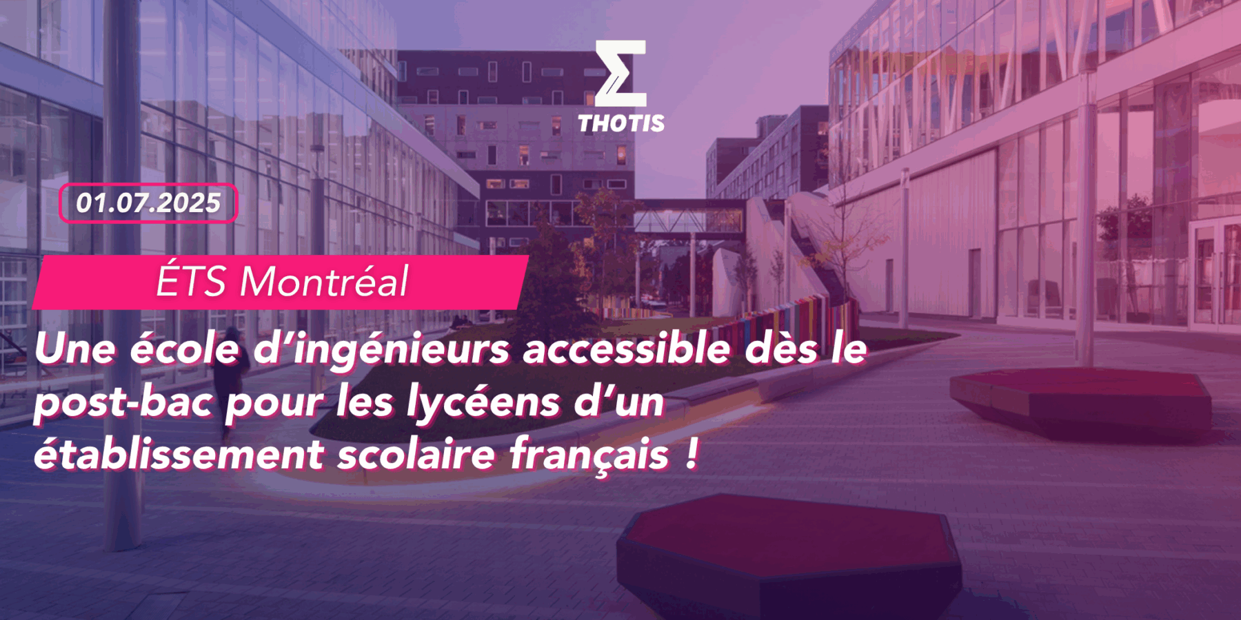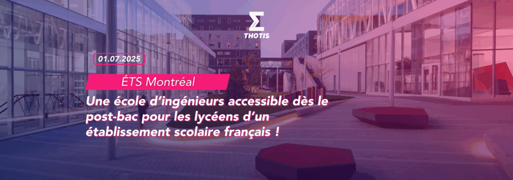 L’ÉTS Montréal (École de technologie supérieure) est une université spécialisée en ingénierie, comparable aux grandes écoles d’ingénieurs françaises. Elle offre aux lycéennes et lycéens des établissements français la possibilité de suivre un cursus d’ingénieur à Montréal dès le post-bac. Il sera notamment possible, dès septembre 2026, de suivre une prépa intégrée.