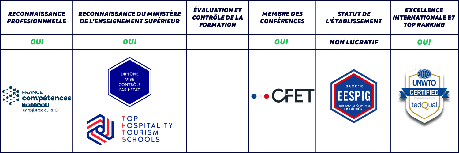 Reconnaissance académique et professionnelle : bachelor visé par l’État, certifié TedQual par l’ONU, membre des réseaux THTS et EUROCHRIE