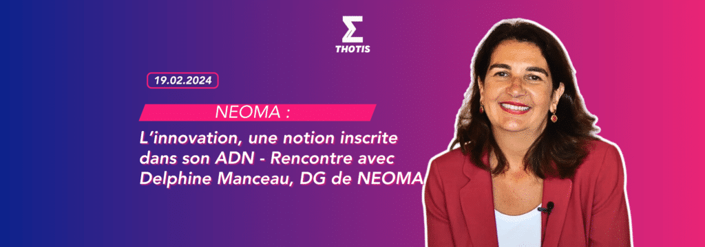 L’équipe Thotis a le plaisir de dévoiler le premier épisode de sa nouvelle série d’interviews “DG sur écoute”. Une rubrique qui donne la parole aux directeurs et directrices de Grandes Écoles. Et en guise de première invitée, nous avons eu l’occasion d’échanger avec Delphine Manceau, directrice générale de NEOMA depuis 2017. Zoom sur une école à l’identité forte, innovante, devenue une référence à l’international. Par Valentine Dunyach