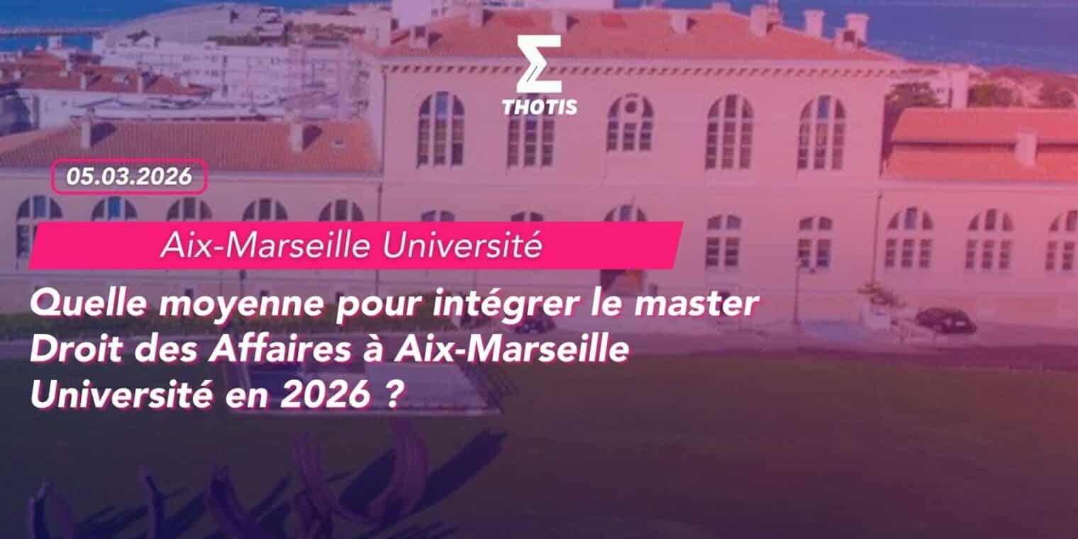 Le master Droit des Affaires d’Aix-Marseille Université (AMU) est l’une des formations juridiques les plus complètes et les plus demandées du sud de la France. Avec 17 parcours de spécialisation, un réseau de 178 intervenants professionnels et des débouchés couvrant aussi bien les cabinets d’avocats d’affaires que les directions juridiques d’entreprises, la formation attire chaque année plusieurs milliers de candidats. Mais quelle moyenne faut-il afficher pour y entrer ? Et suffit-il d’avoir de bonnes notes pour décrocher une place ? Thotis répond à ces questions dans cet article.