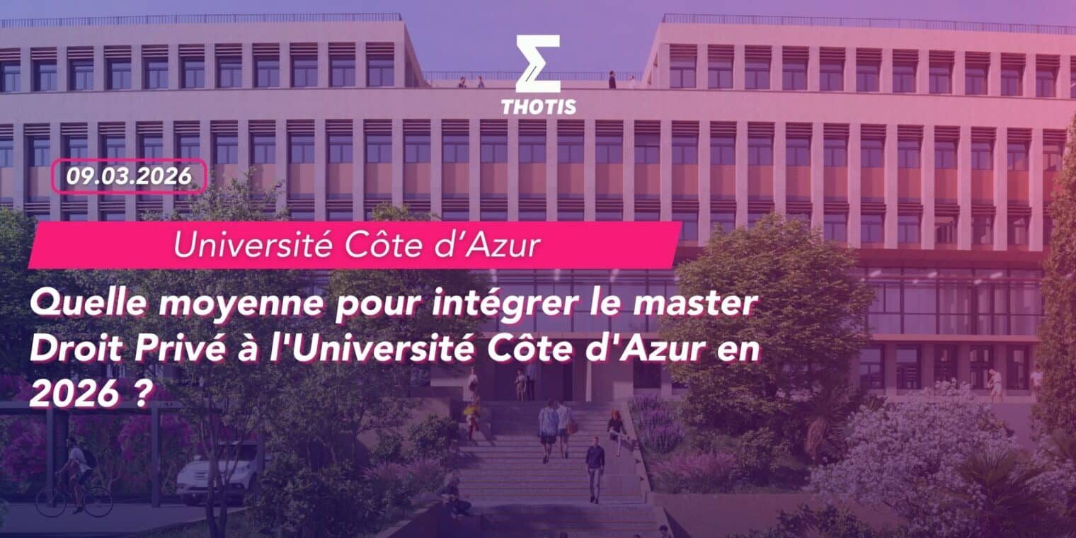 Le master Droit Privé de l’Université Côte d’Azur (UCA) figure parmi les formations juridiques les plus sélectives du littoral méditerranéen. Avec un indice de sélectivité de 0,116 et près de 2 731 candidatures pour 140 places, il se classe dans la catégorie « très sélectif » un cran au-dessus du master Droit Privé d’Aix-Marseille et proche du seuil des formations les plus compétitives. Sa spécificité ? Une architecture pédagogique entièrement modulaire en M1, une spécialisation en M2 via six parcours distincts, et une implantation à Nice qui lui confère une dimension internationale notamment grâce à l’intégration du droit monégasque dans les enseignements. Quelle moyenne faut-il pour y entrer ? La rédaction de Thotis y répond.