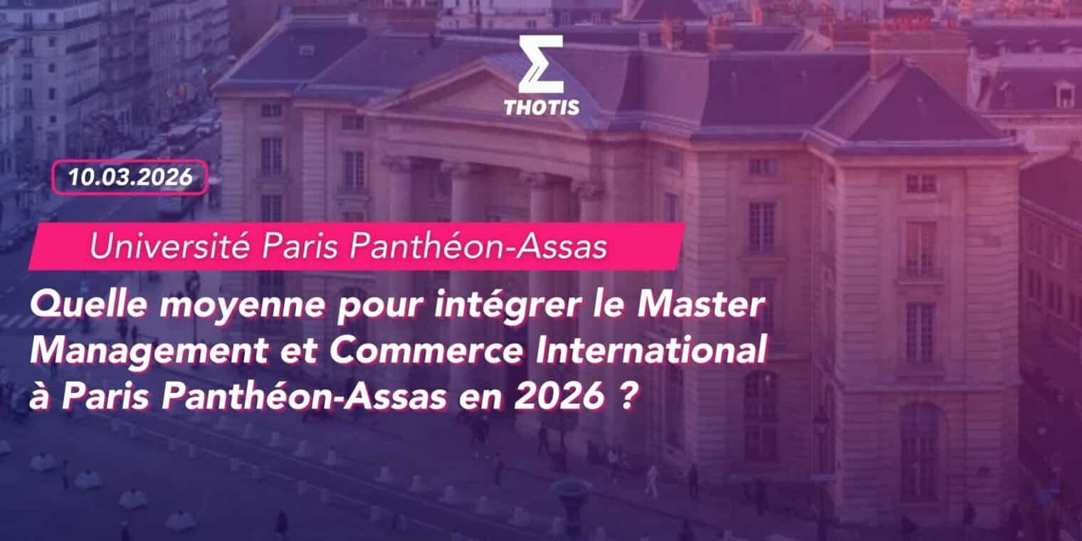 Le master Management et Commerce International (MCI) de l’Université Paris Panthéon-Assas figure parmi les formations en commerce international les plus sélectives de France. Avec un indice de sélectivité de 0,018 et 2 578 candidatures pour seulement 22 places, il se classe au sommet des masters les plus compétitifs accessibles via Mon Master devant le master Finance et Asset Management de Paris 1 Panthéon Sorbonne en termes de ratio candidats/place. Sa spécificité ? Une formation cinquantenaire entièrement tournée vers l’alternance, adossée au laboratoire CRED (Centre de Recherche en Économie et Droit), classée 1ère dans la catégorie management international au classement Eduniversal 2025 pour la troisième année consécutive, et dotée d’un réseau de partenaires entreprises d’une ampleur exceptionnelle. Un dossier d’excellence, une maîtrise linguistique avancée et une expérience internationale réelle sont les trois conditions non négociables pour y entrer. Quelle moyenne faut-il pour y accéder ? La rédaction de Thotis y répond.